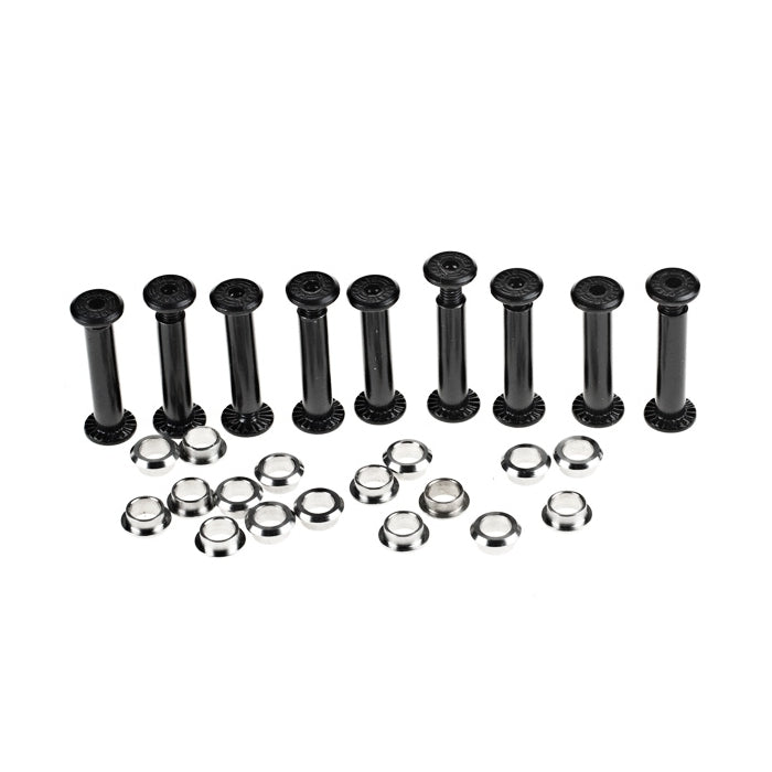 Create Originals frame axles are zinc plated to withstand corrosion in the rough elements. The threads are also coated with Locktite™ coating to keep them together. Comes in a set of 8 complete axles and 16 frame spacers, enough for a pair of frames.